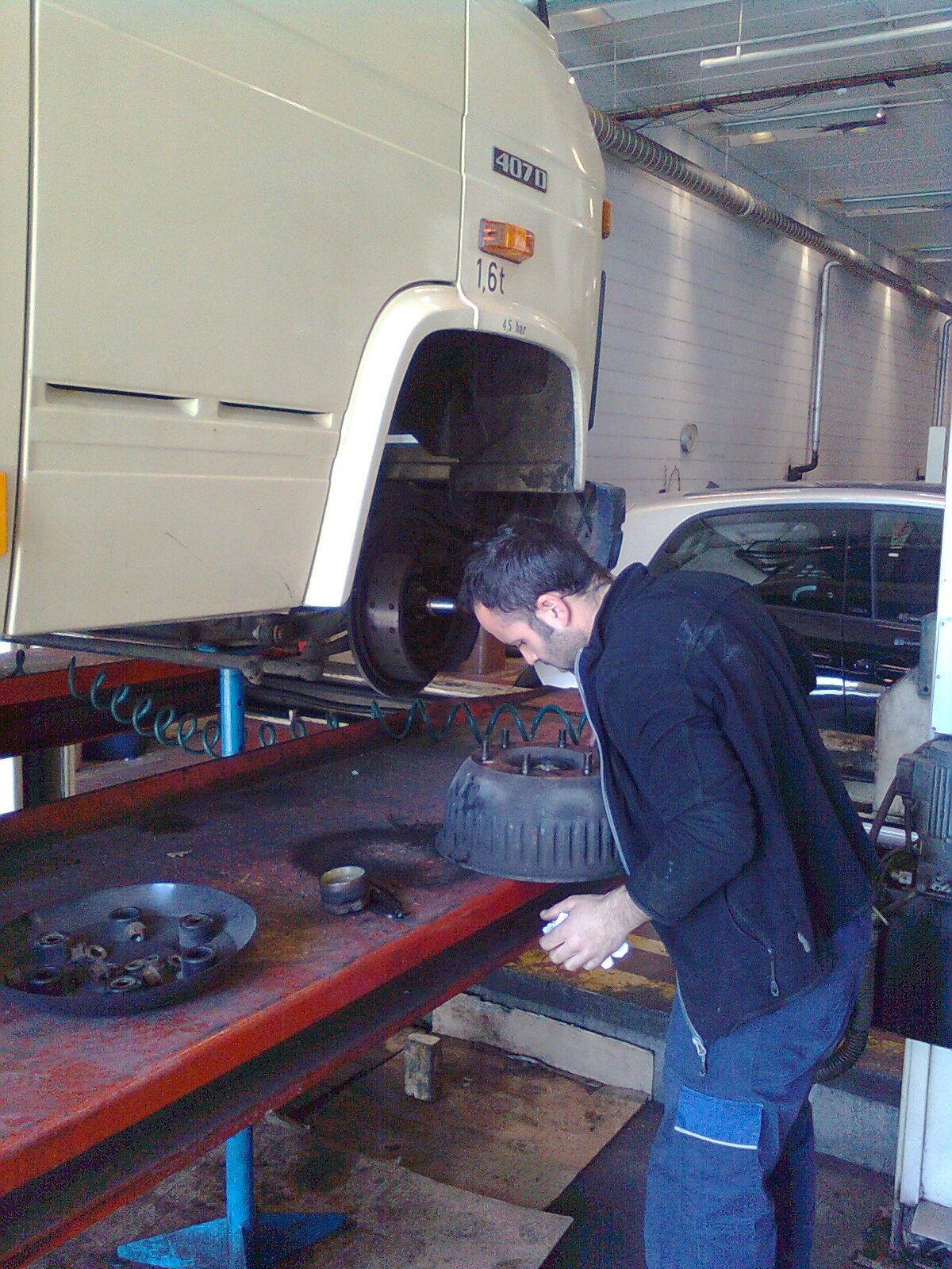 2.te Nacht auf Speditionsparkplatz, morgens grollerte und knirschte es, dachte an viele Steinchen im Profil, Zweifel.
